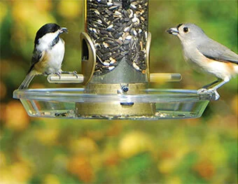 There are two main reason to add a seed tray underneath your tube style bird feeder. One is to catch seed & shells from getting to the ground under the feeder and the other is to attract ground feeding birds, like Cardinals! Every one of our tube style bird feeders & finch feeders from Aspects has the option to add a seed tray. These trays are available in different sizes to work best with different sized feeders or to maximize the area of coverage. They attach very easily using a threaded plug that screws right into the base of the feeder.